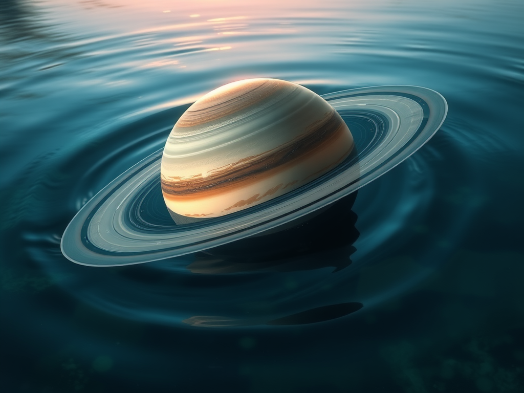 Saturni është një nga planetët më të mëdhenj, plot me gazra. Saturni ka një densitet të vogël, më të vogël se uji, i cili ka një dendësi më të madhe. Kur një objekt me një densitet më të vogël bie në një lëng të trashë, ai duhet të notojë, sipas teorisë. Pra, nëse do ta vendosnim Saturnin në ujë, ai duhet të notojë në të si akulli.