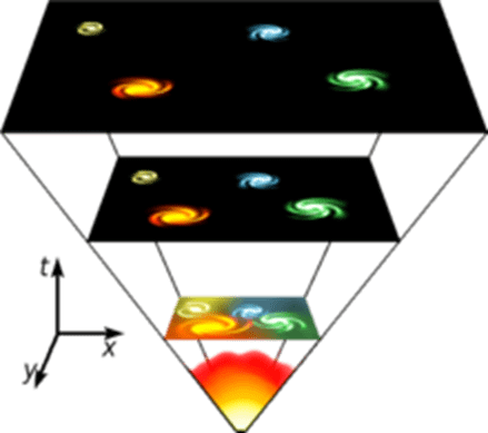 Georges Lemaître propozoi atë që u njoh si teoria e Big Bangut rreth origjinës së Universit, megjithëse ai e quajti atë “hipoteza e atomit të parë”. Ky model bazohet kryesisht në relativitetin e përgjithshëm të Albert Einsteinit. Ky vëzhgim u mor për të treguar se të gjitha galaktikat dhe grumbullimet yjore të largëta kanë një shpejtësi të dukshme (shpejtësia e një vale në një drejtim të caktuar) drejtpërdrejt larg nga pika jonë e vëzhgimit: sa më larg, aq më e lartë është shpejtësia e dukshme.